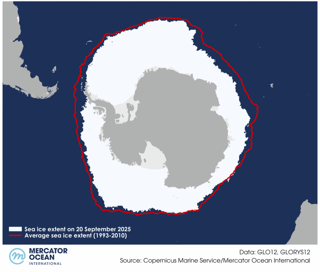 Antarctic sea ice reaches third-lowest winter extent in September 2025