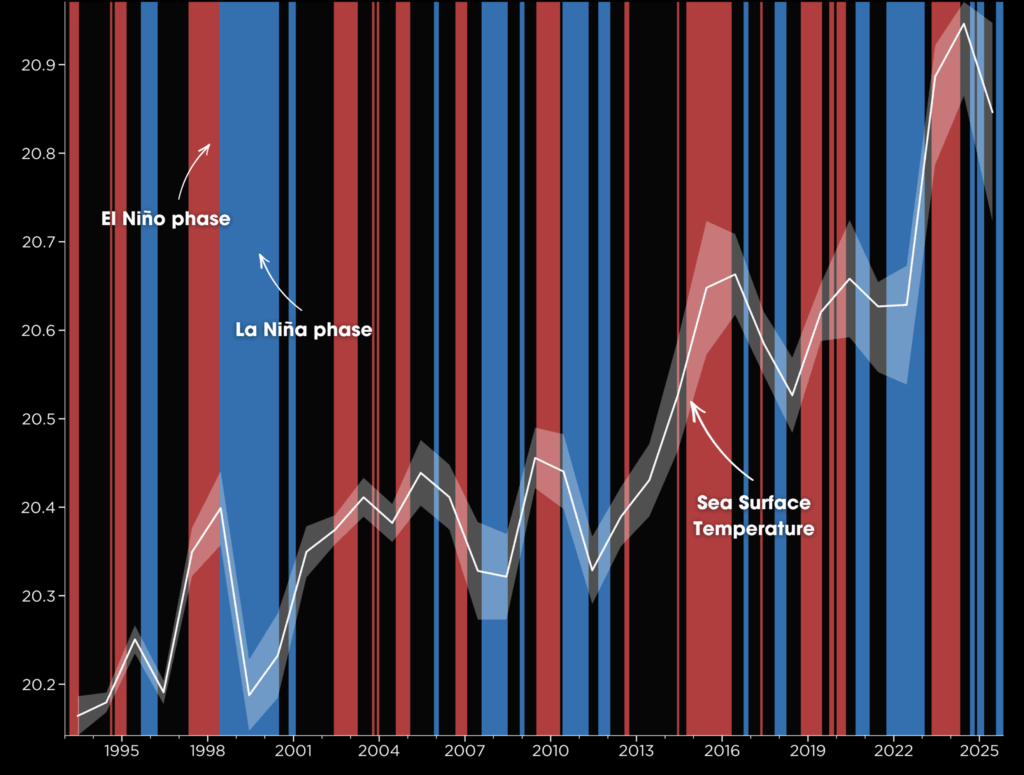 Despite the start of La Niña, 2025 ranks among the three warmest Ocean years since 1993