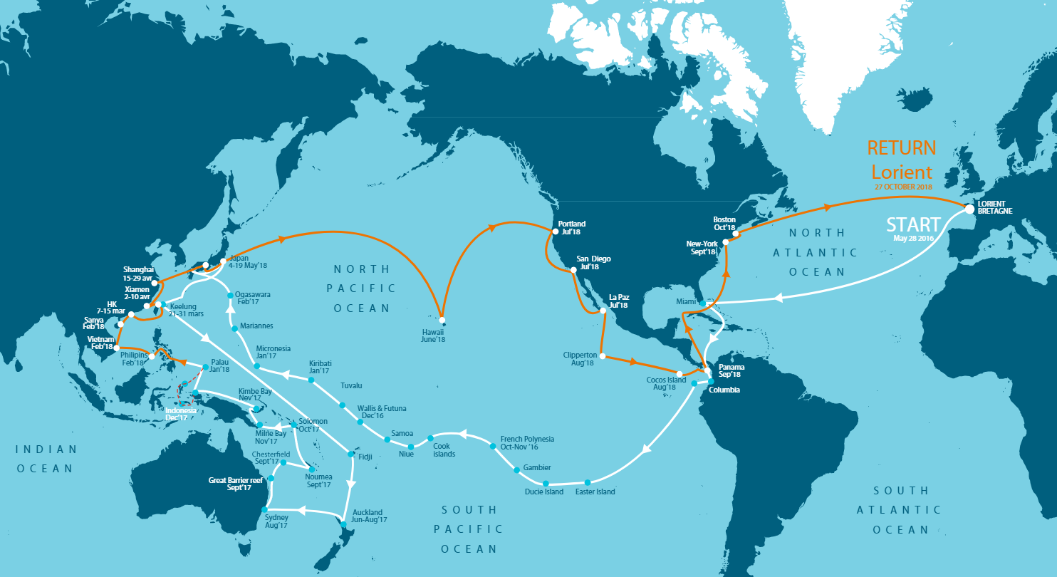 Following a course from the Panama Canal to Japan (2016–2017), and then from New Zealand to China (2017–2018), Tara gathered over 36,000 samples from no less than 32 coral reef sites, making its Pacific expedition the largest scientific campaign dedicated to reef ecosystems. After weighing anchor in Lorient in May 2016, the schooner traveled 100,000 kilometers, stopping in thirty-some countries.