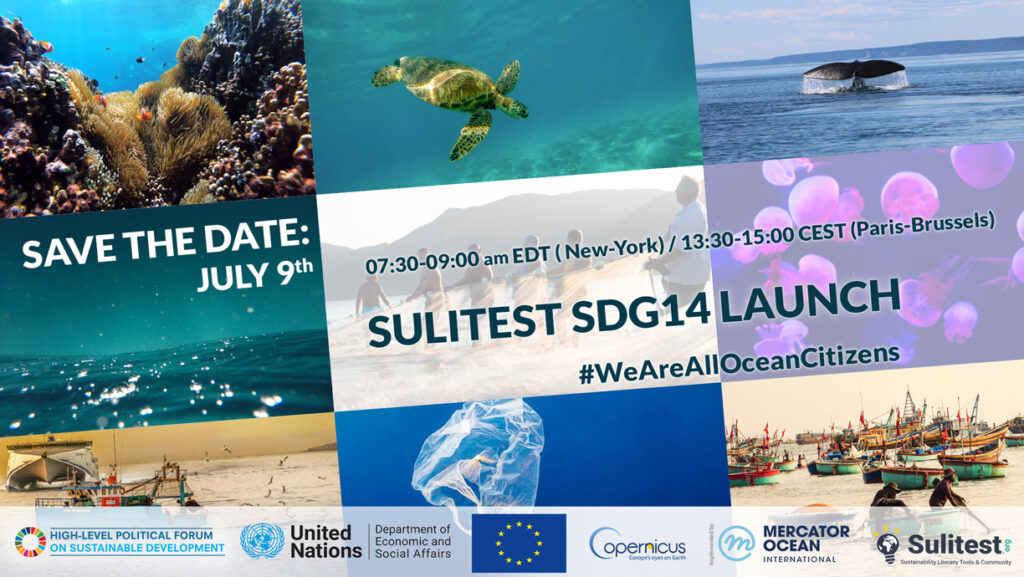 Mercator Ocean International (MOI) with the Copernicus Marine Service in partnership with Sulitest and the UN Department of Economic and Social Affairs (UN DESA) will host a side-event during the 2021 session of the United Nations High-Level Political Forum (HLPF) on Sustainable Development. The event will kick off a SDG14 educational module and is entitled “We Are All Ocean Citizens”. It will take place online 9 July 2021, at 7:30-9:00 am EDT / 1.30-3.00pm CEST.