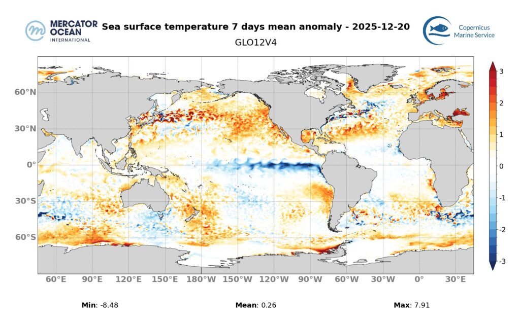 Datasets and products: Global Ocean Physics Analysis and Forecast (sea surface temperature) E.U. Copernicus Marine Service/ Mercator Ocean International. https://doi.org/10.48670/moi-00016