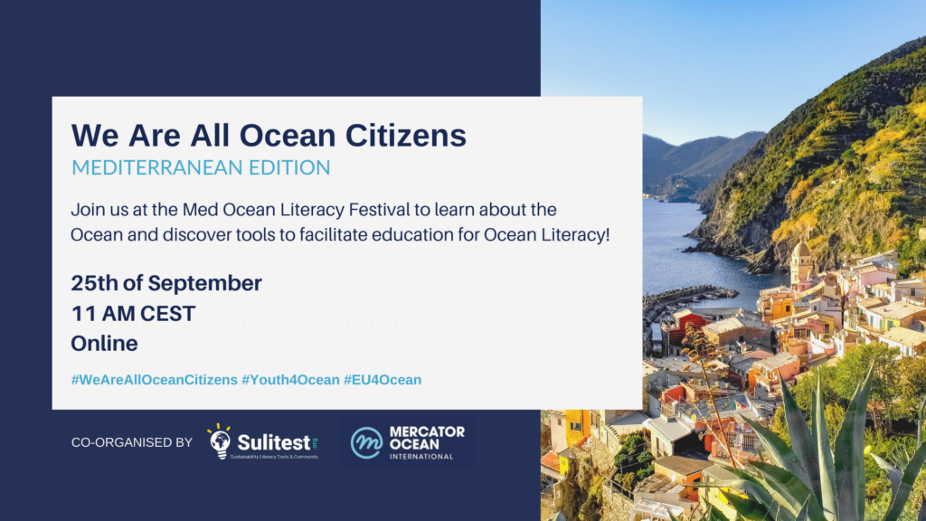 To celebrate the Mediterranean Coast Day on September 25th, Mercator Ocean International (MOi) will participate in the Med Ocean Literacy Festival, organised by the EU4Ocean Coalition. With the Copernicus Marine Service and in partnership with Sulitest, MOi will host the online event #WeAreAllOceanCitizens to present the SDG14 module.