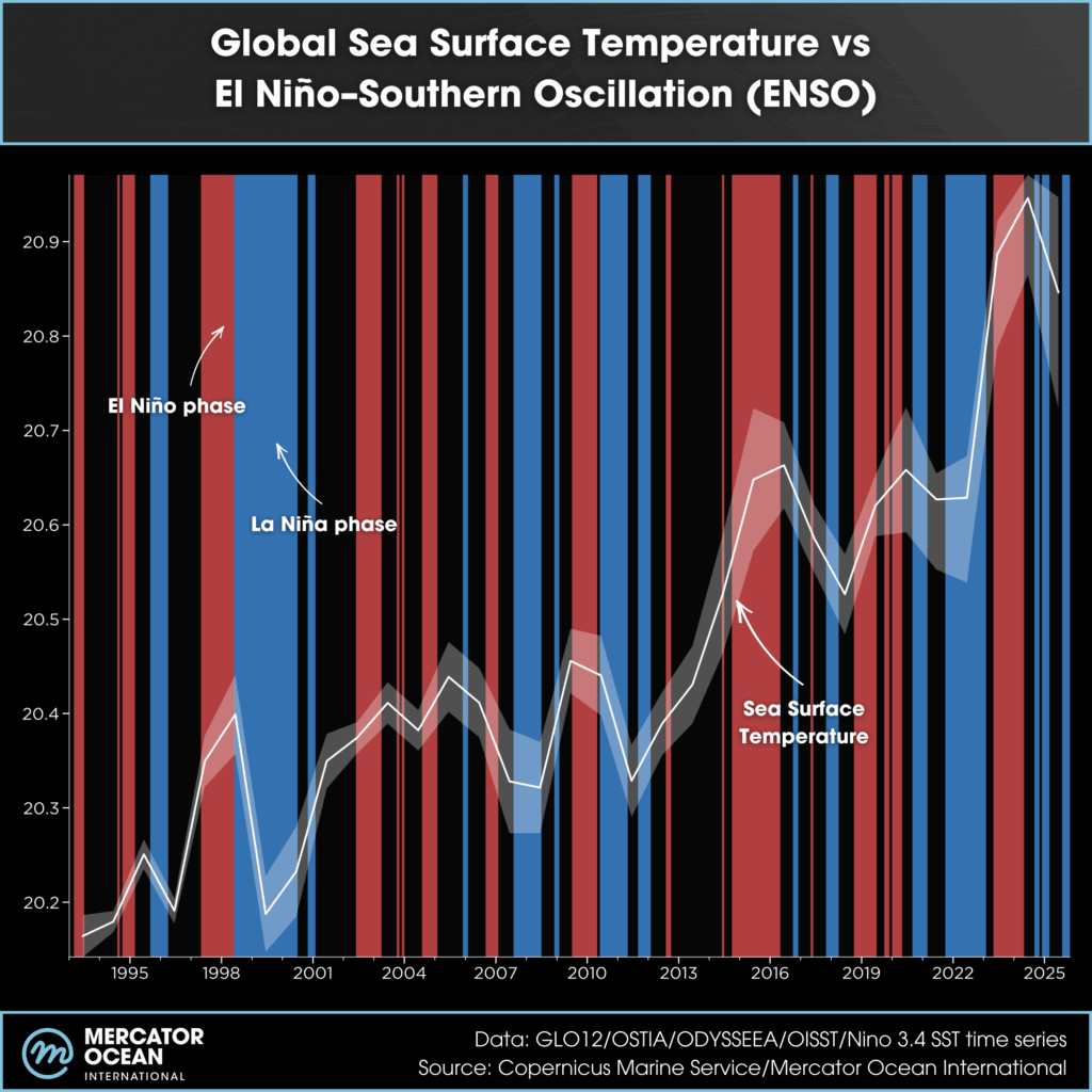 Malgré le début de La Niña, 2025 figure parmi les trois années les plus chaudes pour l’océan depuis 1993
