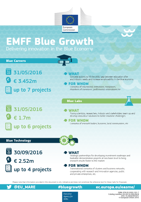 Cette année, trois appels à propositions sont ouverts dans le cadre du Fonds européen pour les affaires maritimes et la pêche afin de favoriser la croissance bleue dans toute l’Europe. La Commission européenne a organisé un événement de lancement le 5 avril 2016 pour présenter ces appels.Avec un budget de plus de 7,5M€, les appels« Blue careers« ,« Blue […]