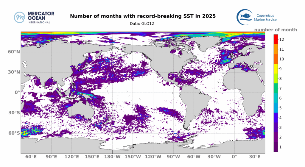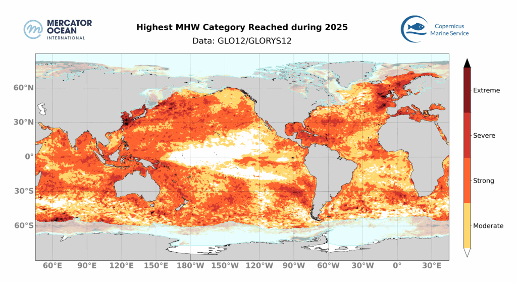 Les océanographes de Mercator Ocean International (MOi) examinent les vagues de chaleur marine à travers l’océan mondial. Ils analysent une variété d’ensembles de données à partir d’analyses d’observation