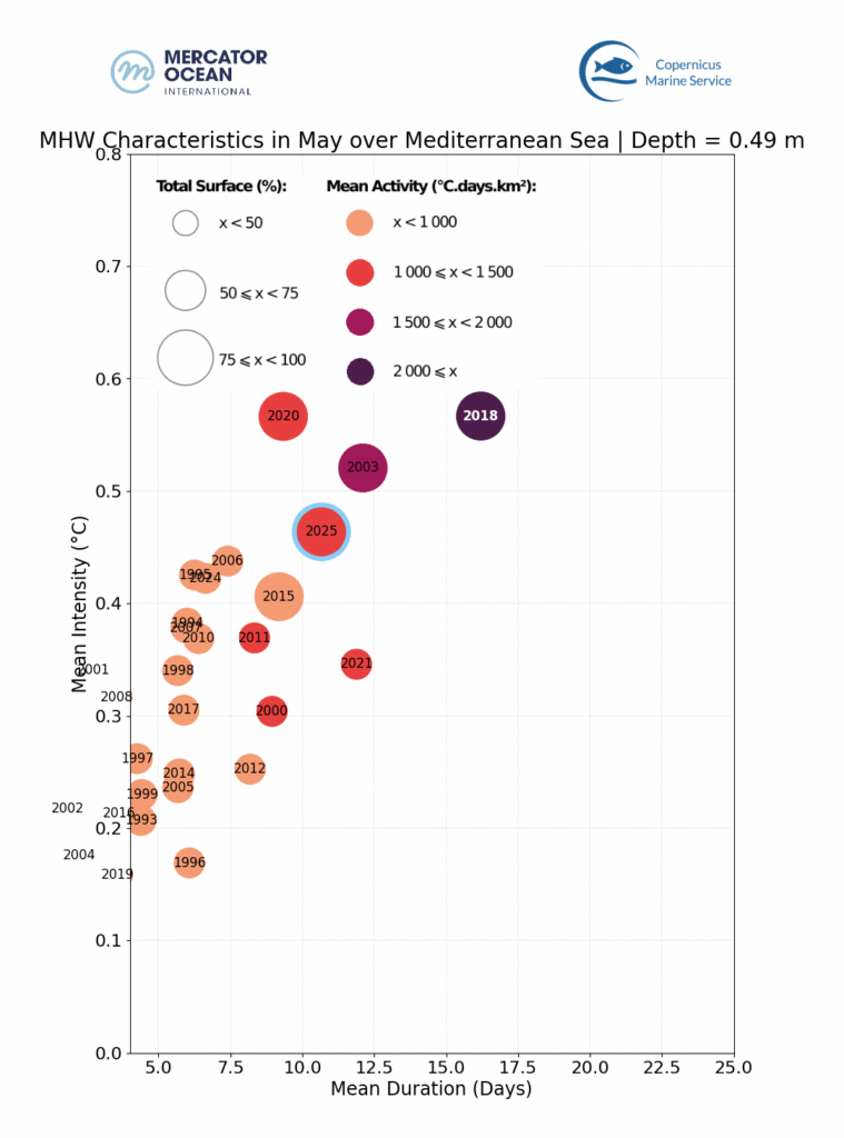 - le deuxième mois de mai le plus chaud (après 2018) en Méditerranée.