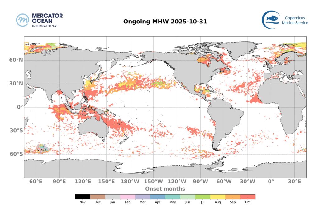 Statistiques sur les vagues de chaleur marine pour octobre 2025