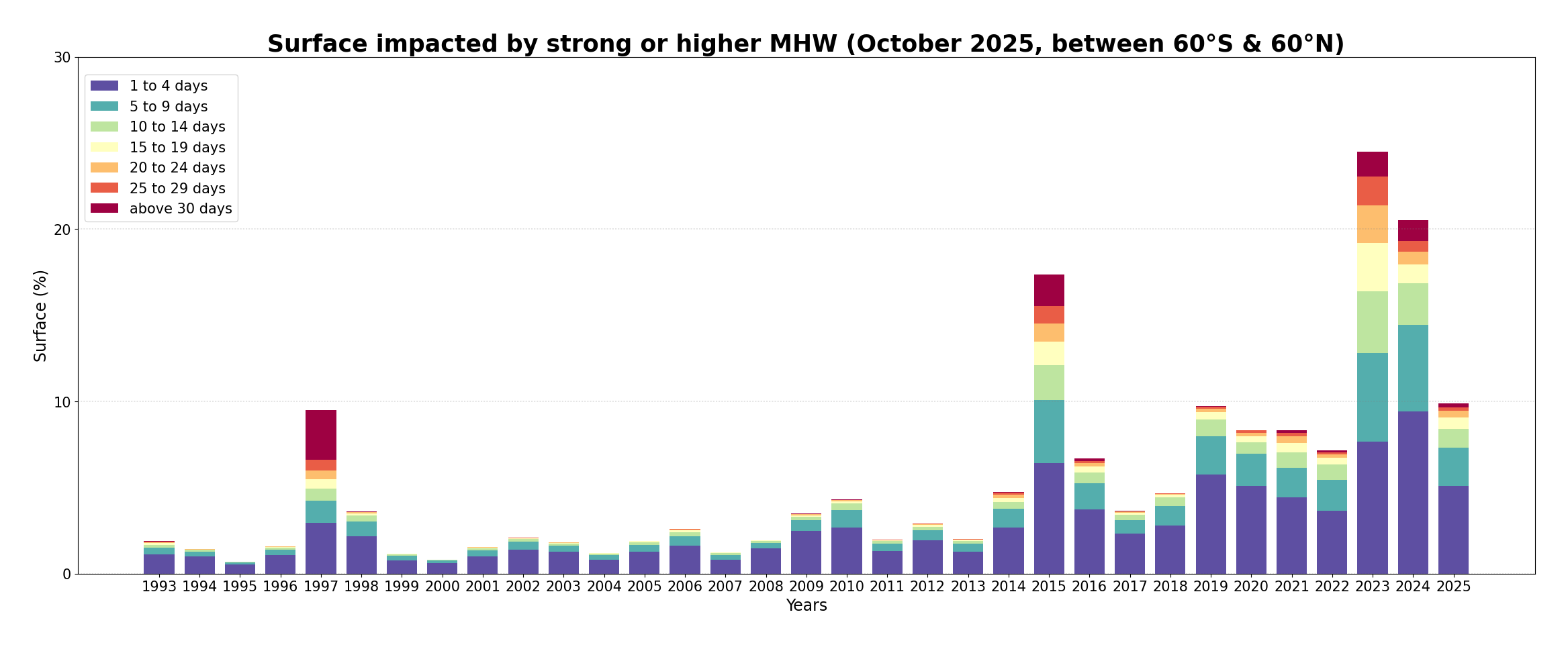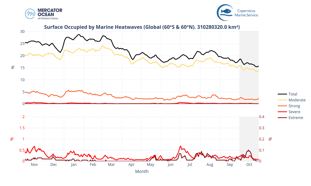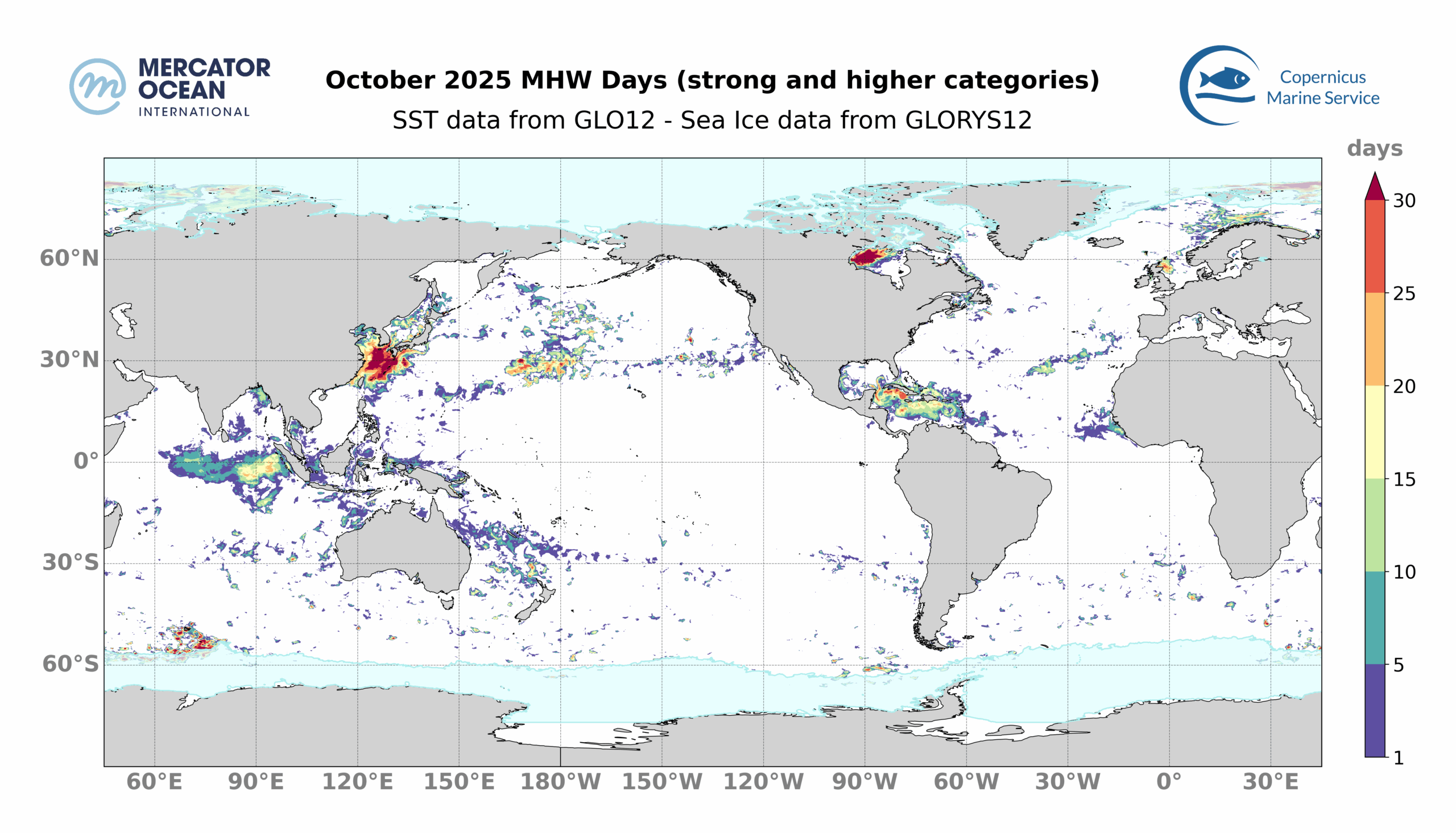 Statistiques sur les vagues de chaleur marine pour octobre 2025