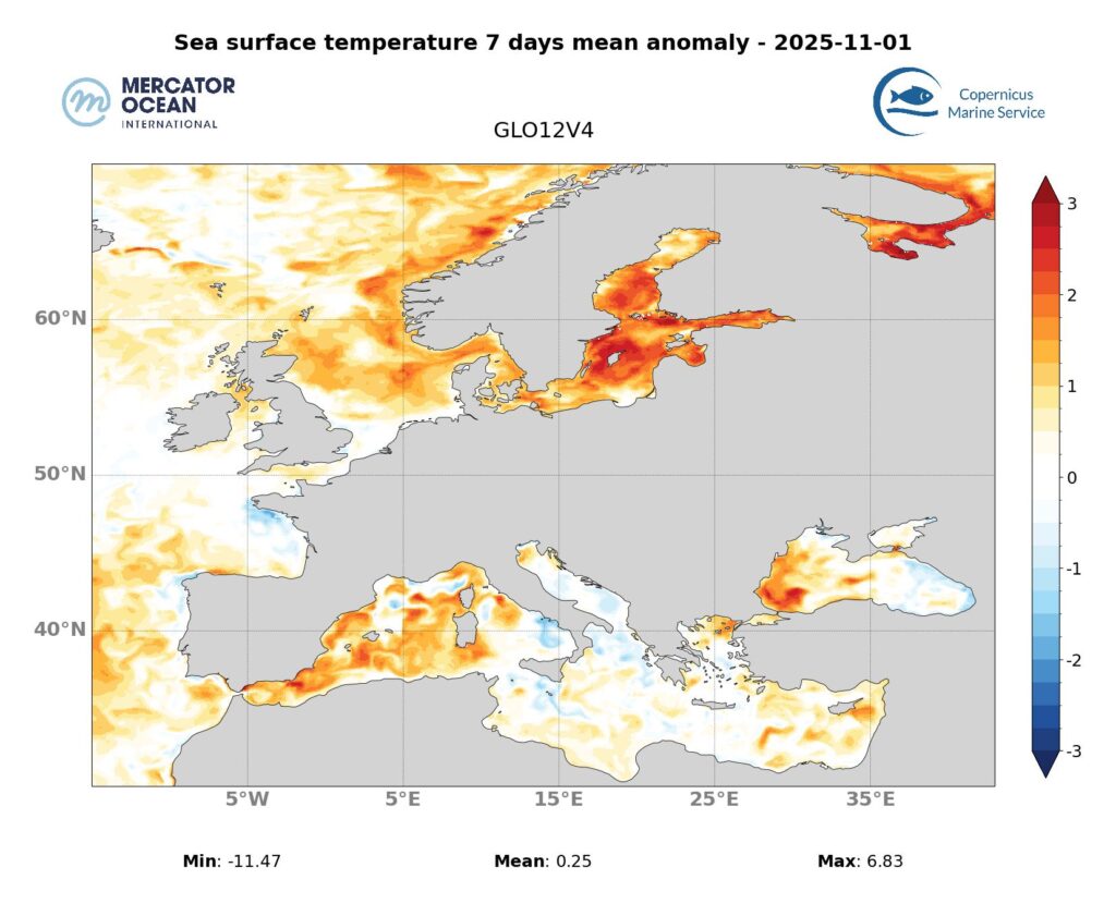 | Mer Méditerranée | -0,5°C à 1,5°C |
