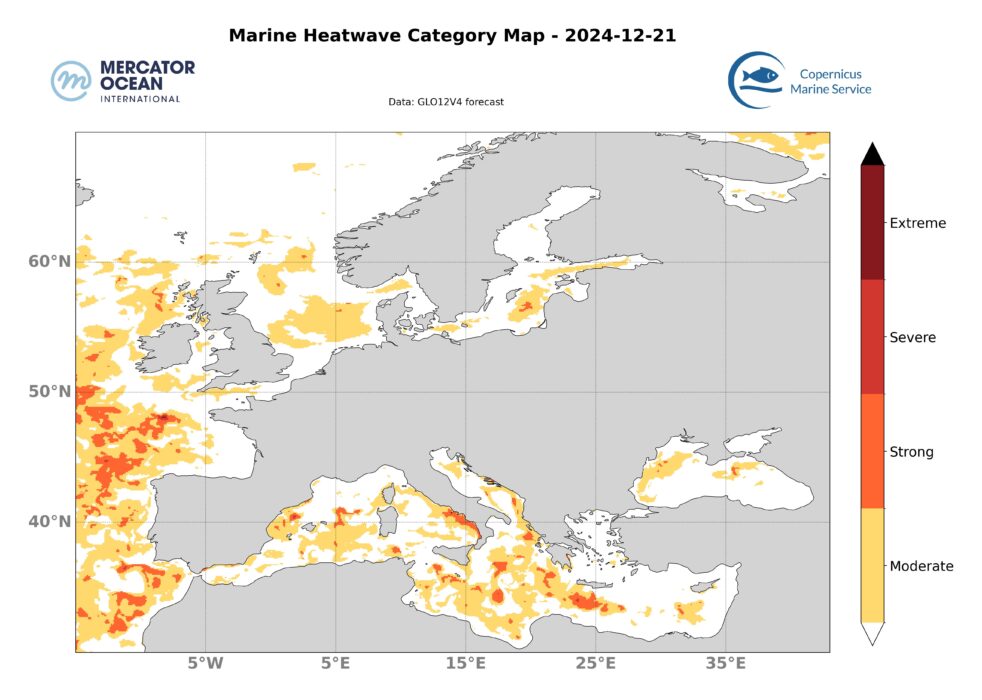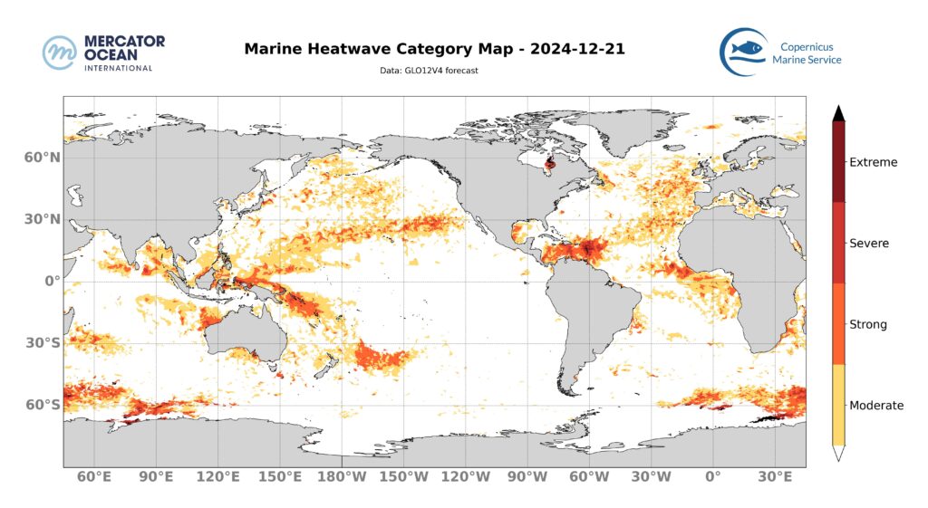 La vague de chaleur marine dans cette région augmentera en intensité, avec le développement de catégories fortes et sévères, ainsi que localement extrêmes.