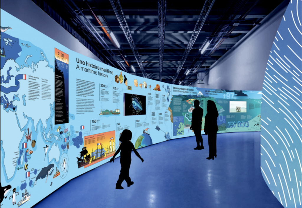 Ce projet est porté par la Plateforme Océan & Climat avec le soutien du Ministère de la mer et s’inscrit dans le cadre de la Présidence française du Conseil de l’Union européenne (PFUE). Mercator Océan est partenaire scientifique de l’exposition et le service marin de COPERNICUS, piloté par Mercator Océan est fournisseur de données océanographiques numériques. Au cours du film long de l’exposition intitulé « Le cœur battant de l’Océan », projeté à 360°, le visiteur pourra découvrir des animations basées sur l’océan numérique du service marin du programme COPERNICUS donnant à voir les dynamiques de l’océan global.
