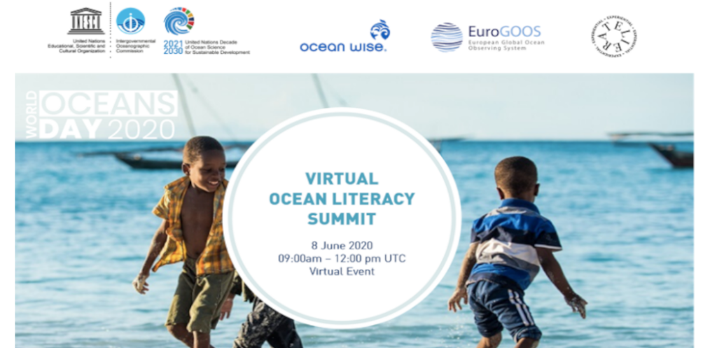 Le 8 juin 2020, pour célébrer la Journée Mondiale des Océans, la Commission Océanographique Intergouvernementale de l’UNESCO (IOC-UNESCO), en partenariat avec Ocean Wise, EuroGOOS et Experiential Atelier, organisera son premier sommet virtuel sur l’ alphabétisation des océans (ocean literacy).