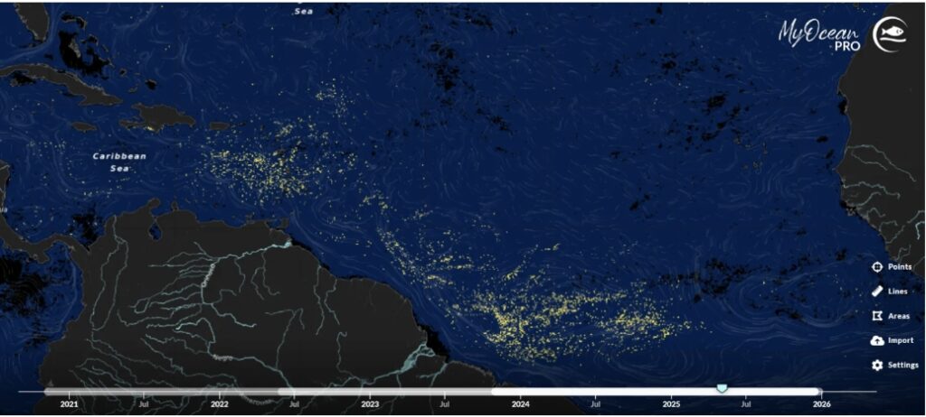 Forecasts Sargassum influxes across the Equatorial Atlantic and EEZs, enabling proactive coastal and marine planning.