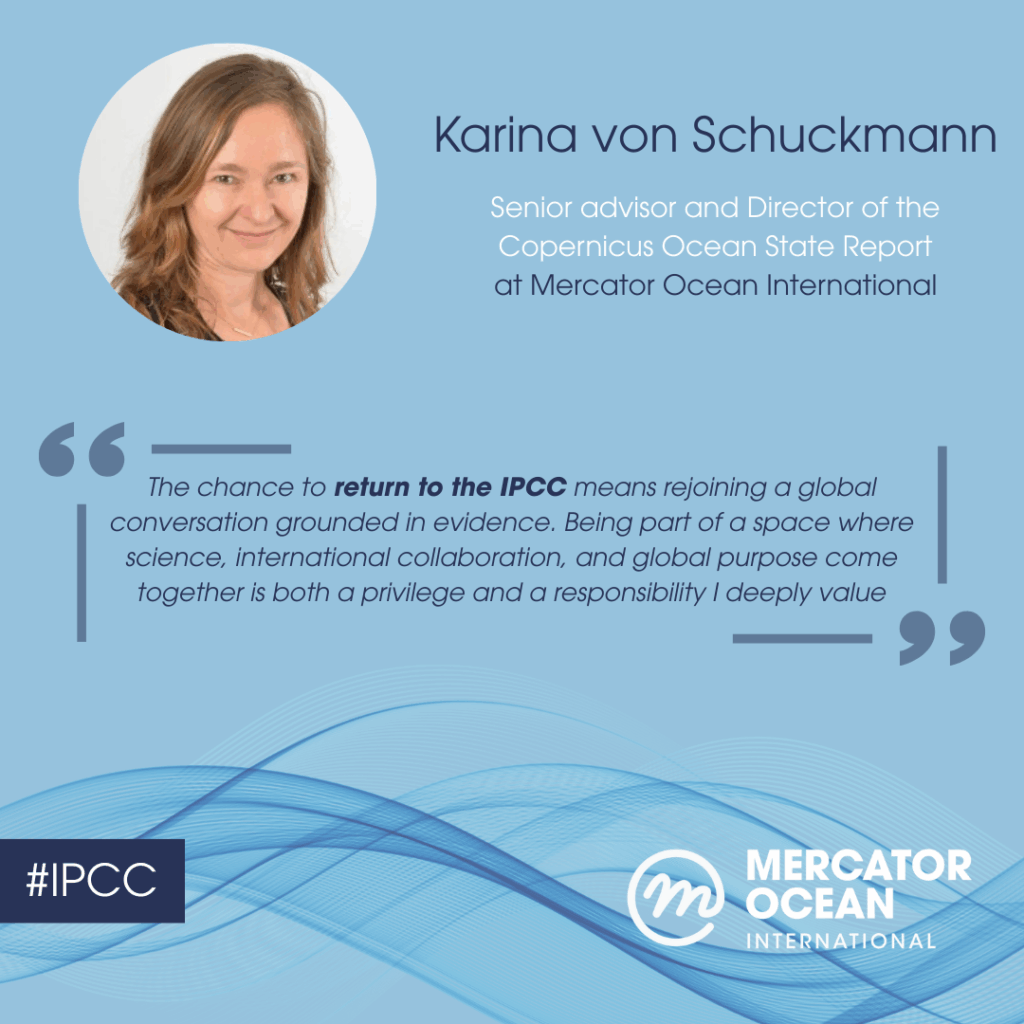 Les scientifiques de Mercator Ocean, Angélique Melet, responsable de l’équipe Climat Océan, et Karina von Schuckmann, conseillère principale et directrice du rapport Copernicus sur l’état des océans, ont été sélectionnés pour contribuer en tant qu’auteurs principaux ( au septième rapport d’évaluation (AR7) du Groupe d’experts intergouvernemental sur l’évolution du climat (GIEC), qui sera publié prochainement. Nos scientifiques travailleront avec 664 experts de 111 pays, choisis parmi près de 4 000 candidats.