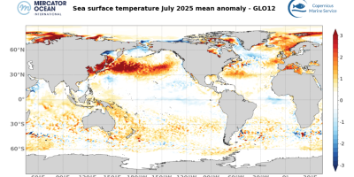 August 2025 : Third-warmest August on record for the global ocean and the sixth-warmest in the North Atlantic