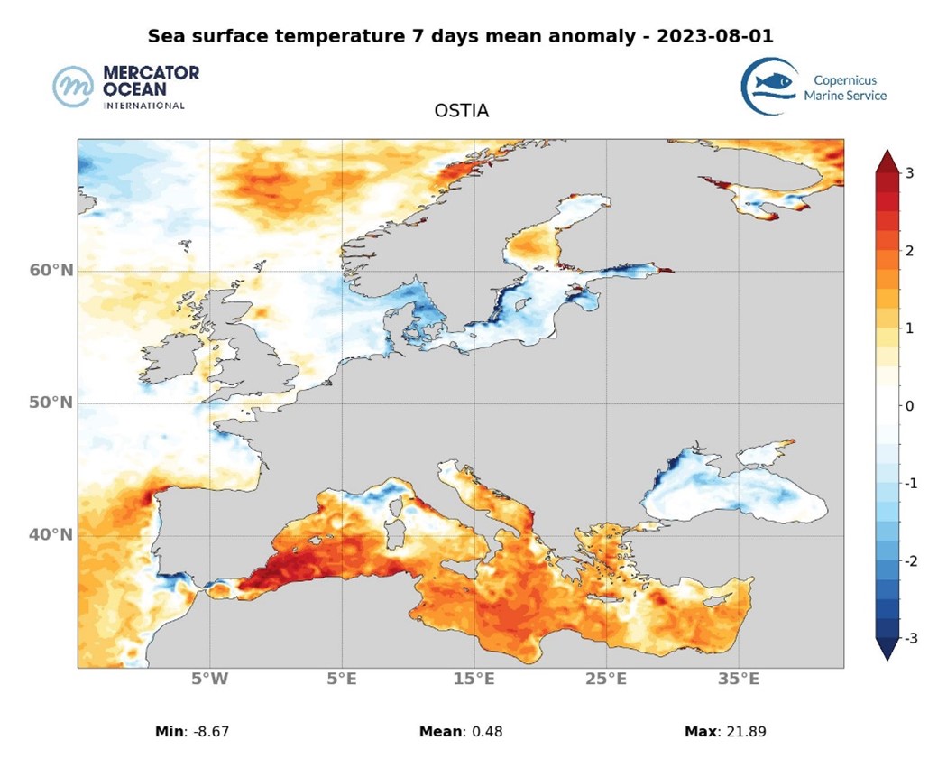 Mercator Ocean: Marine heatwave bulletin for 4 August 2023