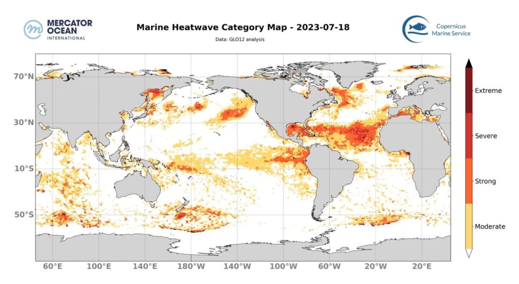 Mercator Ocean: Marine heatwave bulletin for 24 July 2023