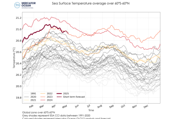 Mercator Ocean International is an international reference for Ocean data and expertise and provides a variety of thematic pages and Ocean Bulletins, following changes in the Ocean in line with climate change and natural variations. We provide a growing suite of Bulletins, offering in-depth coverage on topics like Marine Heatwaves, Sea Ice, El Niño, and more.