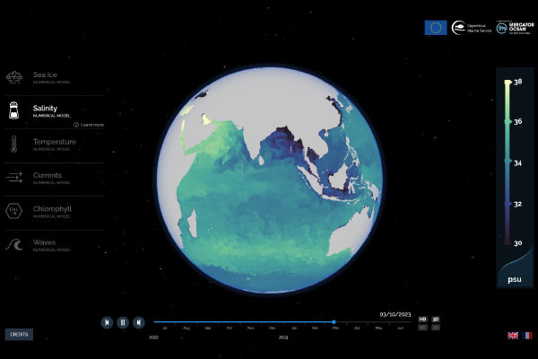 Mercator Ocean provides an advanced suite of Data Viewers, providing access to state-of-the-art Earth Observation and Ocean data through our extensive service portfolio. As a global leader in Ocean forecasting, Mercator Ocean developed its Ocean Bulletin, a live and comprehensive tool for real-time Ocean forecasts. On behalf the European Commission, Mercator Ocean has undertaken the development of specific Data Viewers for key Copernicus services, including Copernicus Marine, WEkEO (in collaboration with EUMETSAT, ECMWF and EEA), as well as the Copernicus Arctic, and Coastal Hubs. These tailored viewers are designed to meet the diverse needs of users, from beginners to experts, making it possible to explore, manipulate and even anticipate the state of the marine environment and more.