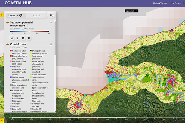 Through the Copernicus Coastal Hub viewer, access a selection of open and free Earth data covering the European Coastal zones including air, sea and land products and information that describes the coastal environment and a complex land-sea continuum through a large set of variables.