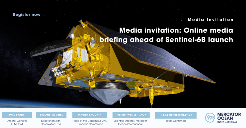 Pierre-Yves Le Traon, Mercator Ocean’s Scientific Director, will highlight the major role of Sentinel-6B for the Copernicus Marine Service – from monitoring mean sea level rise to improving ocean forecasts for a wide range of marine applications.