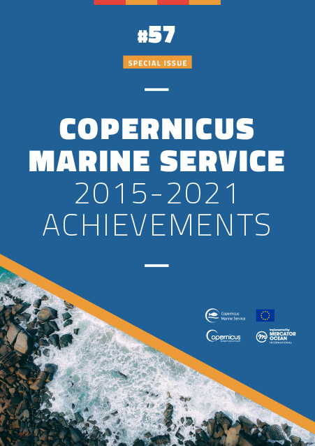 - P.Y. Le Traon1, A. Ali7, E. Alvarez Fanjul26, L. Aouf12, L. Axell3, R. Aznar26, M. Ballarotta2, A. Behrens21, M. Benkiran1, A. Bentamy5, L. Bertino7, P. Bowyer27, V. Brando30, L. A. Breivik3, B. Buongiorno Nardelli29, S. Cailleau1, S. A. Ciliberti8, E.Clementi9, S. Colella30, N. Mc Connell11, G. Coppini8, G. Cossarini24, T. Dabrowski27, M. de Alfonso Alonso-Muñoyerro26, E. O’Dea11, C. Desportes1, F. Dinessen3, M. Drevillon1, Y. Drillet1, M. Drudi9, R. Dussurget1, Y. Faugère2, V. Forneris30, C. Fratianni9, O. Le Galloudec1, I. Garcia Hermosa1, M. García Sotillo26, P. Garnesson31, G. Garric1, I. Golbeck14, J. Gourrion32, M. L. Grégoire22, S. Guinehut2, E. Gutknecht1, C. Harris11, F. Hernandez1, V. Huess6, J.A. Johannessen7, S. Kay11,15, R. Killick11, R. King11, J. de Kloe4, G. Korres25, P. Lagemaa18, R. Lecci8, J.F. Legeais2, J. M. Lellouche1, B. Levier1, P. Lorente26, A. Mangin31, M. Martin11, A. Melet1, J. Murawski6, E. Özsoy23, A. Palazov19, S. Pardo15, L. Parent1, A. Pascual26, J. Paul1, E. Peneva20, C. Perruche1, D. Peterson11, L. Petit de la Villeon5, N. Pinardi9,8, S. Pouliquen5, M. I. Pujol2, R. Rainaud12, P. Rampal7, G. Reffray1, C. Regnier1, A. Reppucci1, A. Ryan11, S. Salon24, A. Samuelsen7, R. Santoleri30, A. Saulter11, J. She6, C. Solidoro24, E. Stanev21, J. Staneva21, A. Stoffelen4, A. Storto8, P. Sykes11, T. Szekely32, G. Taburet2, B. Taylor15, J. Tintore33, C. Toledano28, M. Tonani11, L. Tuomi17, G. Volpe30, H. Wedhe34, T. Williams7, L. Vandendbulcke22, D. van Zanten4, K. von Schuckmann1, J. Xie7, A. Zacharioudaki10, H. Zuo13.The Copernicus Marine Enviromnetal Monitoring Service : Principales réalisations scientifiques et perspectives d’avenir, Lettre trimestrielle Mercator Ocean, 56 Numéro spécial, 2017.