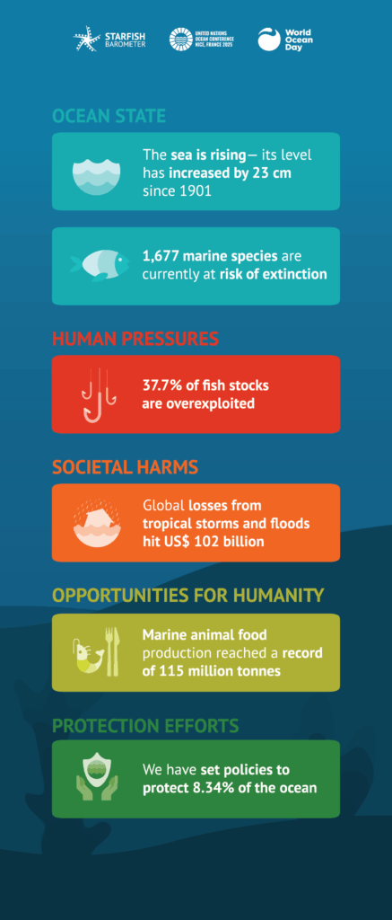 The 2025 Starfish Barometer is designed to directly support the UN Sustainable Development Goals as well as UNOC3’s priority to strengthen the role of science in marine policy making.