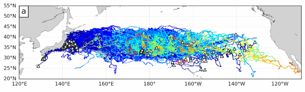 - Read the full paper: “Swim, baby, swim: the active dispersal scenario of juvenile North Pacific loggerhead turtles revealed by historical satellite tracking data and novel operational oceanography products”